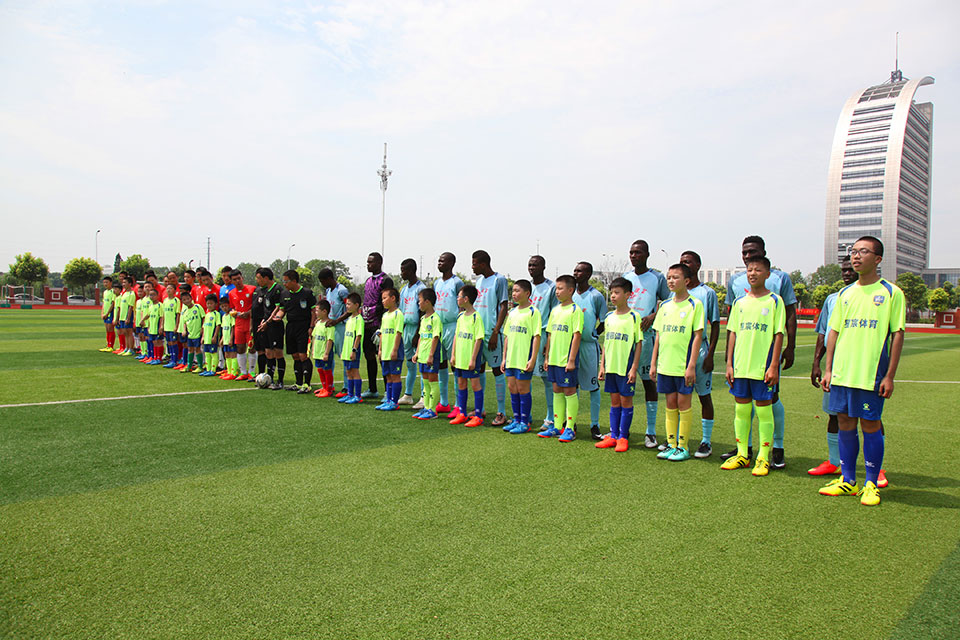 恰逢江蘇鵬飛集團(tuán)與*達(dá)成建設(shè)年產(chǎn)100萬(wàn)噸水泥粉磨站項(xiàng)目合同,應(yīng)江蘇鵬飛集團(tuán)的邀請(qǐng),7月15日*U17隊(duì)來(lái)到海安,并在海安城南實(shí)驗(yàn)中學(xué)與我縣教育聯(lián)隊(duì)舉行一場(chǎng)國(guó)際足球友誼賽,本次比賽由江蘇鵬飛集團(tuán)全程贊助。時(shí)值盛夏,天氣炎熱,但一點(diǎn)也不影響比賽的順利進(jìn)行,球員的激情和觀眾的熱情充盈整個(gè)賽場(chǎng),場(chǎng)面和諧融洽,雖為比賽,實(shí)則是相互交流學(xué)習(xí),充分發(fā)揮了友誼第一,比賽第二的精神。此次友誼賽是我縣本土球隊(duì)首次與國(guó)際球隊(duì)接洽,在比賽中也讓我縣教育聯(lián)隊(duì)受益匪淺、感觸頗深,對(duì)今后青少年校園足球教育大有裨益。比賽結(jié)束后,董事長(zhǎng)王家安帶領(lǐng)*U17足球隊(duì)員參觀了鵬飛集團(tuán)生產(chǎn)基地,并舉行座談及饋贈(zèng)禮品,簡(jiǎn)單的一場(chǎng)足球賽,卻為譜寫(xiě)中非友誼添上實(shí)實(shí)在在的一筆。