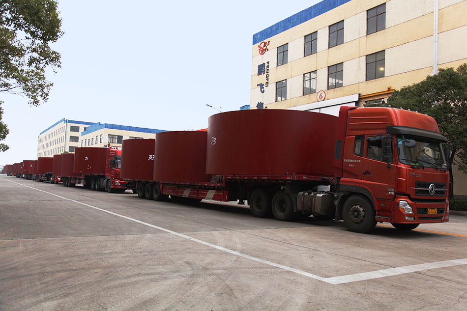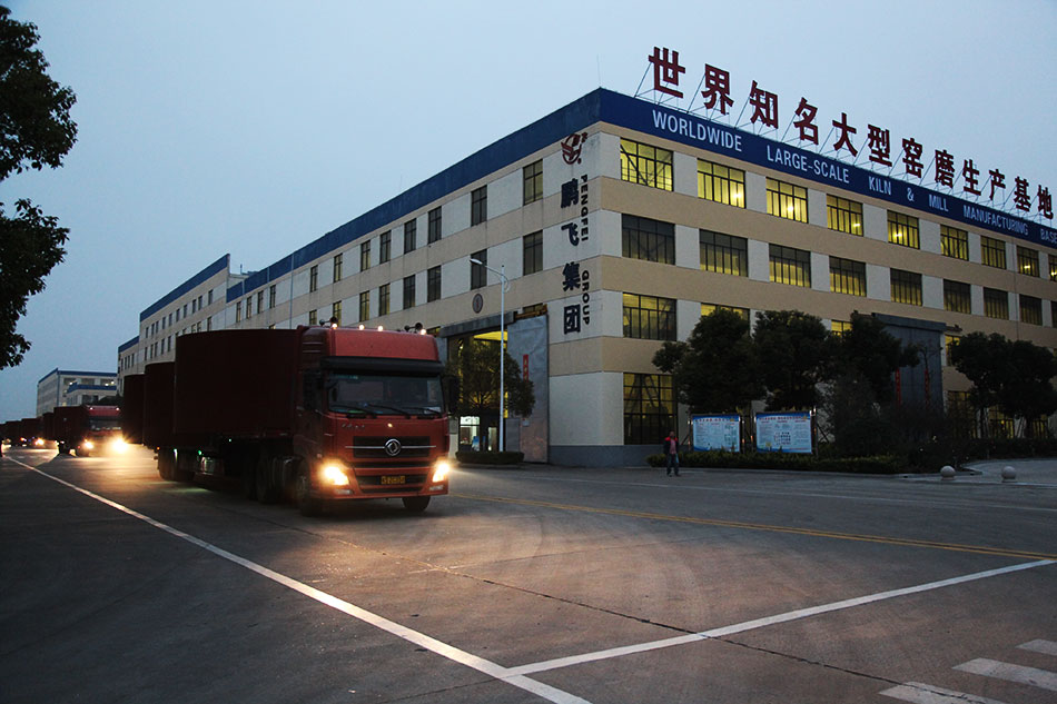 11月21日江蘇鵬飛集團股份有限公司內一片忙碌,工人師傅們?yōu)槌隹贏J5臺Φ5.4×52米回轉窯發(fā)貨做著準備。公司經(jīng)過數(shù)月的加班加點終于保質按期完成5臺Φ5.4×52米回轉窯制造。