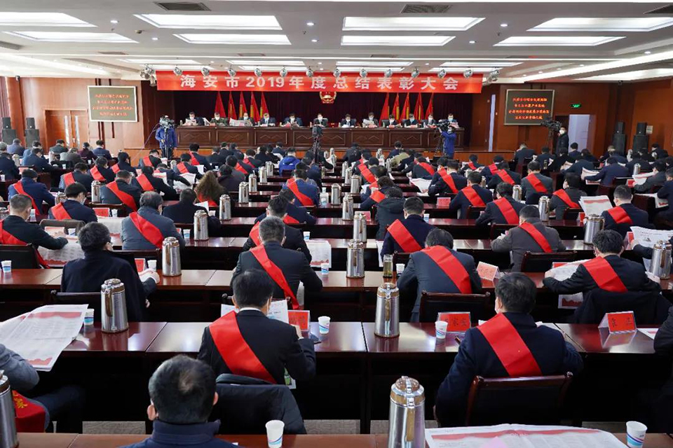 3月14日上午,海安市召開2019年度總結(jié)表彰大會(huì),表彰全市各條戰(zhàn)線涌現(xiàn)的先進(jìn)單位和個(gè)人,由于受新型冠狀肺炎疫情的影響,會(huì)議實(shí)施一人一桌簡便召開。會(huì)議設(shè)主會(huì)場和分會(huì)場,由海安融媒體中心進(jìn)行現(xiàn)場直播。市四套班子全體負(fù)責(zé)人,各區(qū)鎮(zhèn)、各部門主要負(fù)責(zé)人、受表彰對象代表出席會(huì)議。會(huì)議由于立忠市長主持,宣讀表彰決定,獲獎(jiǎng)單位分別上臺領(lǐng)獎(jiǎng),顧國標(biāo)書記做了重要講話。鵬飛集團(tuán)榮獲海安市委、市政府授予的杰出貢獻(xiàn)獎(jiǎng)、工業(yè)百強(qiáng)企業(yè)、開放型經(jīng)濟(jì)先進(jìn)企業(yè)、海安市市長質(zhì)量獎(jiǎng)、王家安董事長當(dāng)選六星級企業(yè)家。