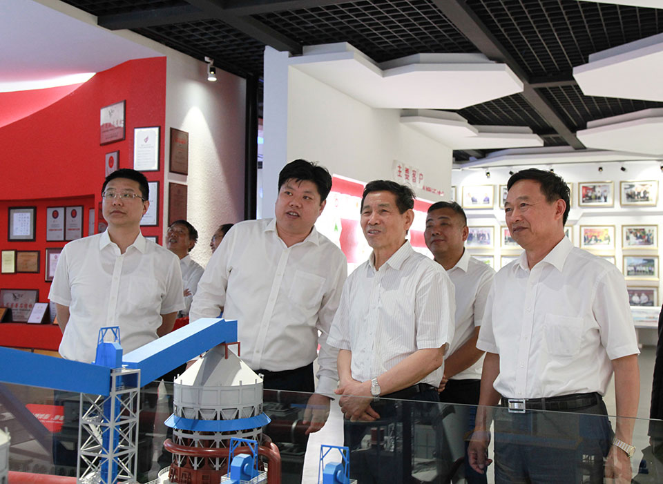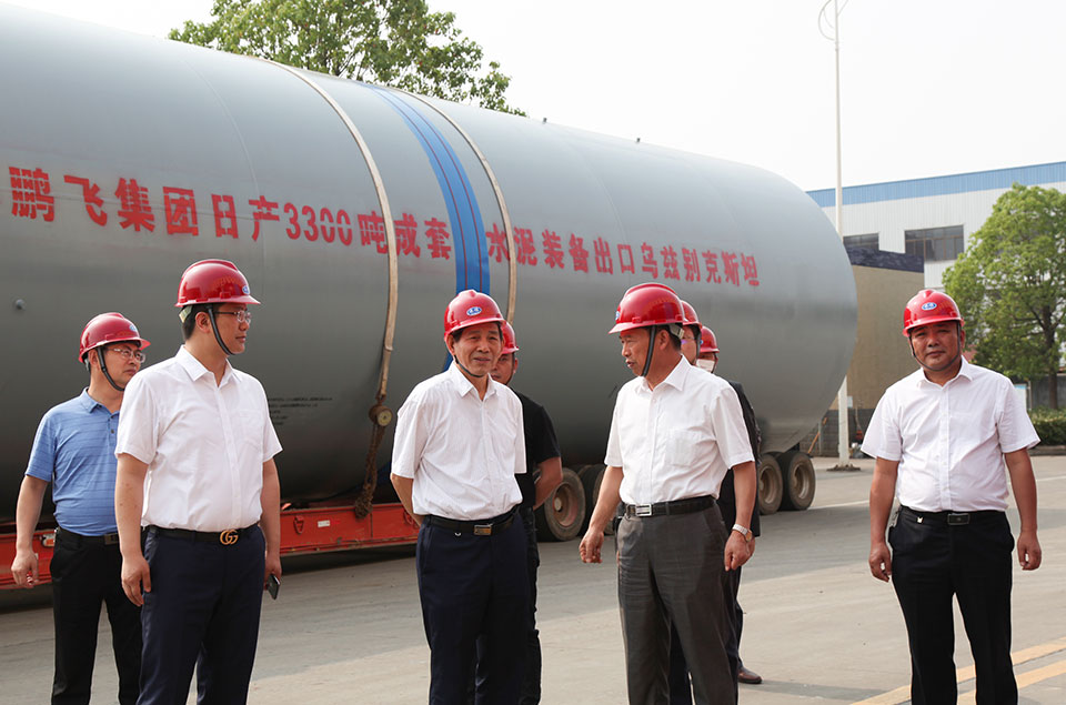 喬會長一行參觀了鵬飛集團回轉(zhuǎn)窯設(shè)備生產(chǎn)基地、公司產(chǎn)品形象展示廳,鵬飛集團董事長王家安從加強疫情防控恢復(fù)生產(chǎn),做好新技術(shù)裝備研發(fā),加快走出去步伐,實施服務(wù)型制造三個方面向喬會長做了情況匯報。