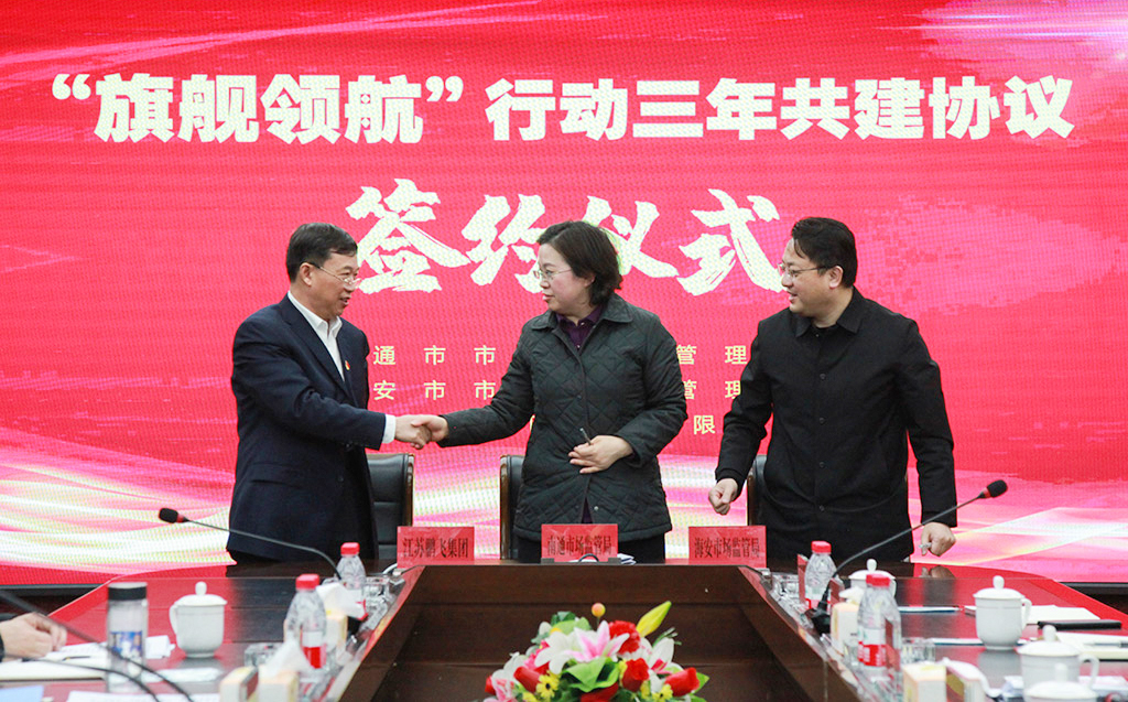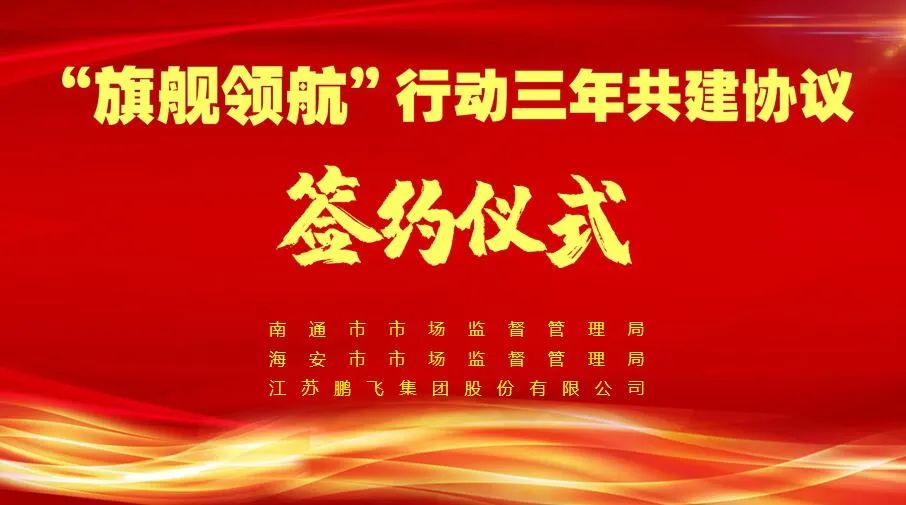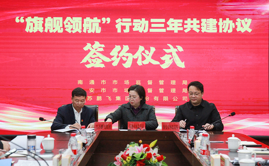 3月25日,江蘇鵬飛集團與南通市市場監(jiān)管局、海安市市場監(jiān)管局共同簽署“旗艦領航”行動三年共建協(xié)議。