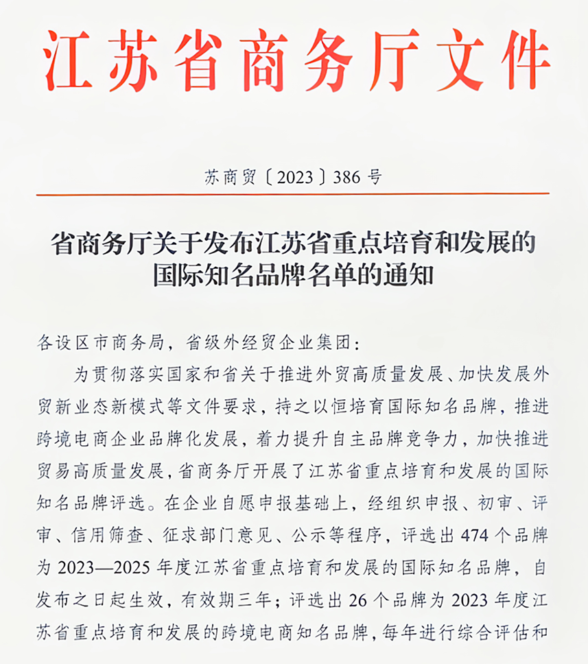 江蘇省重點培育和發(fā)展的國際知名品牌的評選是江蘇省商務(wù)廳為貫徹落實《中共江蘇省委江蘇省人民政府關(guān)于推進(jìn)貿(mào)易高質(zhì)量發(fā)展的實施意見》等文件要求,持之以恒培育國際知名品牌,推進(jìn)跨境電商企業(yè)品牌化發(fā)展,著力提升自主品牌競爭力,加快推進(jìn)貿(mào)易高質(zhì)量發(fā)展的精神要求而組織實施。