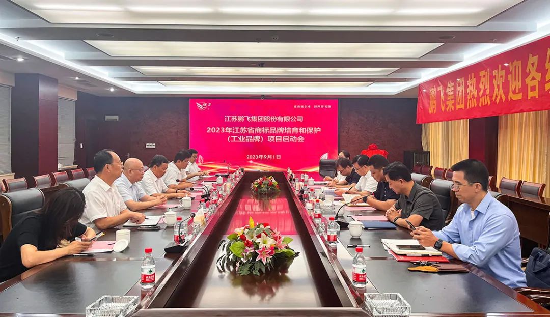 江蘇鵬飛集團承擔2023'江蘇省商標品牌培育和保護(工業(yè)品牌)項目,為推動該項目的實施,9月1日下午,鵬飛集團主持召開項目啟動會,南通市市場監(jiān)督管理局副局長蔣愛龍、知識產(chǎn)權(quán)服務處處長吳欣、知識產(chǎn)權(quán)保護處處長曹曉青,海安市市場監(jiān)督管理局局長余星星、副局長蔣克榮、知識產(chǎn)權(quán)科科長張福高,鵬飛集團黨委書記、董事長王家安,副總施鵬宇、賁道林以及公司品牌管理部等相關(guān)人員參加此次活動。