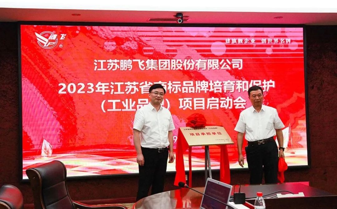 培育具有國際影響力的知名品牌是國家和江蘇省“十四五”發(fā)展規(guī)劃的明確要求。啟動會上,鵬飛集團介紹了項目實施的階段目標任務,經(jīng)費預算及績效目標推進計劃和考核要求。南通市市場監(jiān)督管理局副局長蔣愛龍,鵬飛集團黨委書記、董事長王家安共同為省工業(yè)品牌項目揭牌。