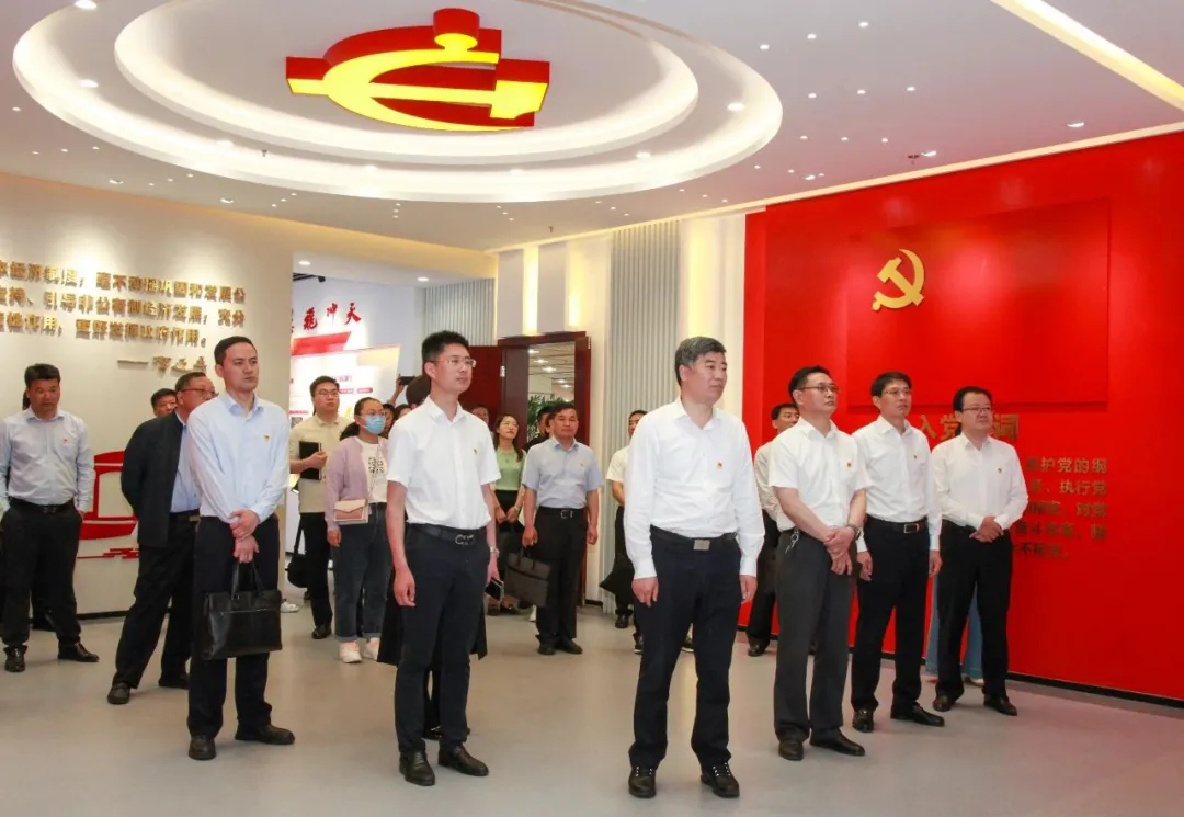 隨后,一行人參觀(guān)了鵬飛集團(tuán)黨建展廳,詳細(xì)了解了鵬飛集團(tuán)“鵬心向黨 窯望未來(lái)”黨建品牌內(nèi)涵。近年來(lái),鵬飛集團(tuán)以“紅翼”黨建工作法為依托,積極引導(dǎo)企業(yè)黨員不忘初心、矢志奮斗,先后獲評(píng)南通市先進(jìn)基層黨組織、南通市黨建工作示范點(diǎn)。
