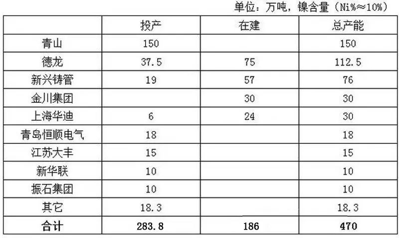 中國鎳冶煉企業(yè)項(xiàng)目進(jìn)展情況