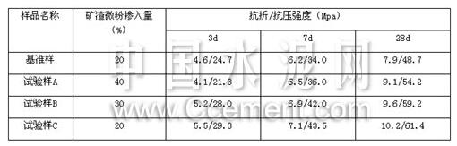 隨著高性能混凝土技術(shù)的發(fā)展與應(yīng)用,礦渣微粉已成為混凝土制備中不可或缺的第六組分材料(人工礦物摻合料)。?;郀t礦渣系冶煉生鐵時(shí)排出的工業(yè)廢渣,每生產(chǎn)一噸生鐵,大約排出300~1000kg礦渣,其礦物成份在Cao-Sio2-Al2o3三元相圖中處于C2AS、CAS2、CS、C2S結(jié)晶區(qū),大致化學(xué)成份為CaO34~46%、SiO222~40%、Al2O35~15、MgO2~13%,并含有少量FeO、MnO、S及TiO2和金屬鐵。礦渣出爐時(shí)經(jīng)水淬急冷,保留了微晶態(tài)的高活性玻璃體結(jié)構(gòu),其有較高的潛在物理化學(xué)活性,在含有硫、堿成份的水化環(huán)境中可激發(fā)出良好的水硬活性(如前蘇聯(lián)研究的堿-礦渣高強(qiáng)水泥屬此類),可將礦渣看作是一種經(jīng)過(guò)高溫煅燒的高硅、低鈣熟料。礦渣采用機(jī)械力活化,磨細(xì)制得的微米級(jí)粉體,具有潛在水硬性礦物的晶格產(chǎn)生畸變,發(fā)揮出優(yōu)良的水化膠凝活性。磨細(xì)礦渣微粉摻入水泥中的強(qiáng)度試驗(yàn)結(jié)果見(jiàn)表6: