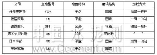 表2    國(guó)外立磨基本結(jié)構(gòu)形式