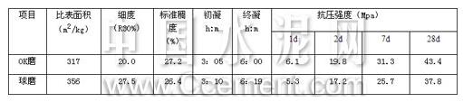 表中數(shù)據(jù)說(shuō)明:在凝結(jié)時(shí)間、標(biāo)準(zhǔn)稠度需水量基本相同的前提下,OK磨磨制的水泥28d抗壓強(qiáng)度比球磨水泥高出15%,同時(shí),水泥的早期強(qiáng)度也高,可進(jìn)一步增加混合材摻量,降低水泥生產(chǎn)成本。
