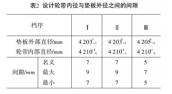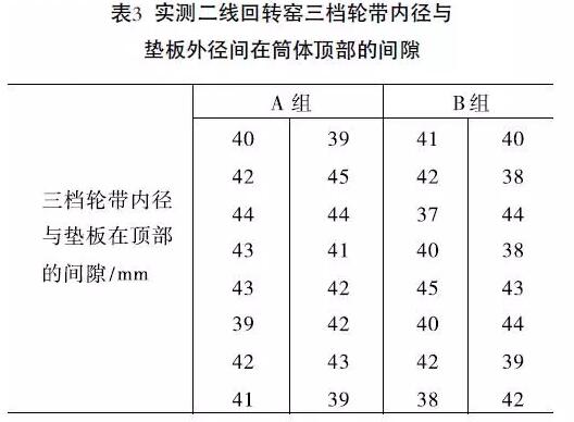 我們對(duì)2線三檔輪帶內(nèi)徑與墊板外徑在筒體頂部的間隙進(jìn)行測量,測量數(shù)據(jù)見表3